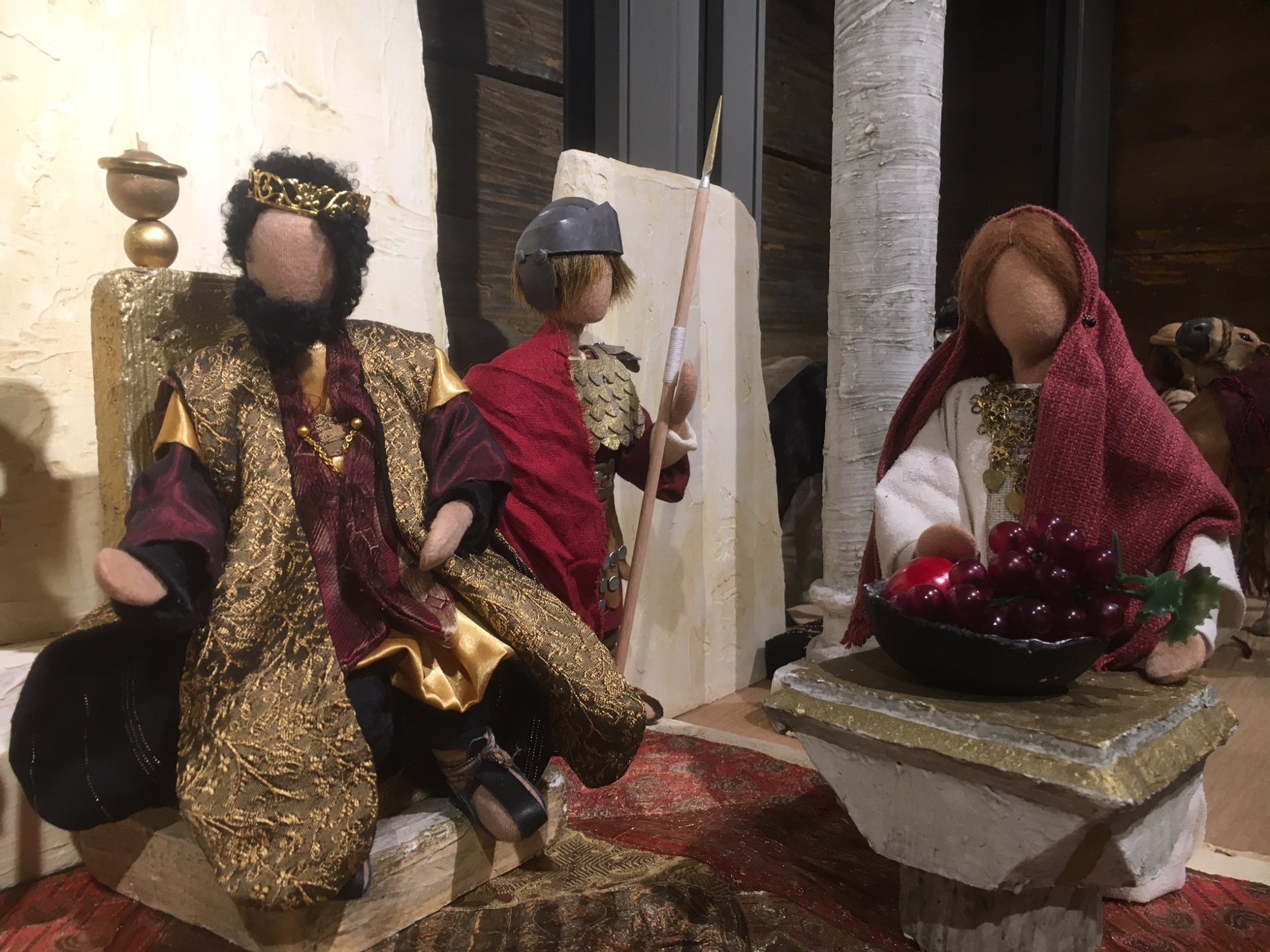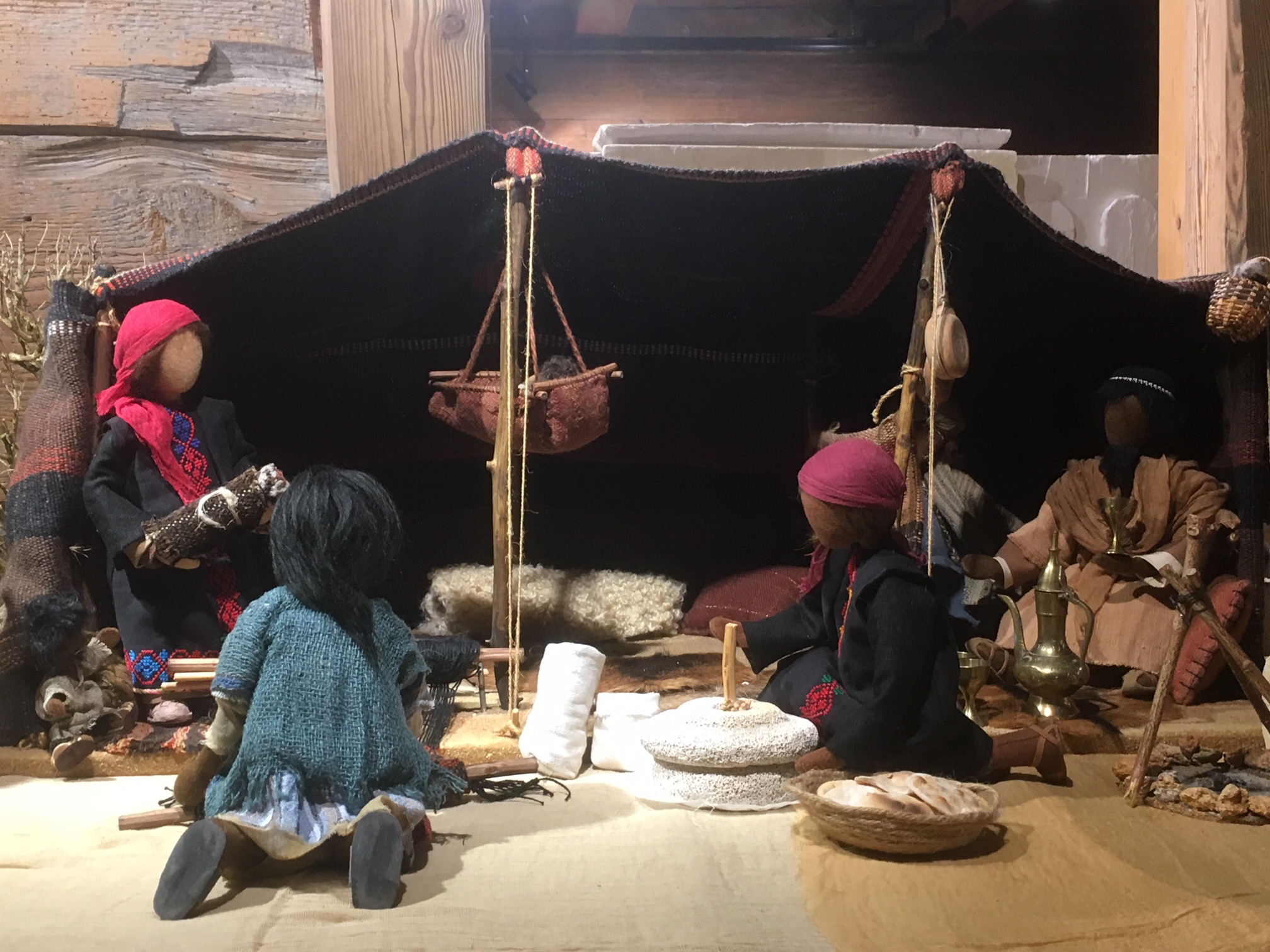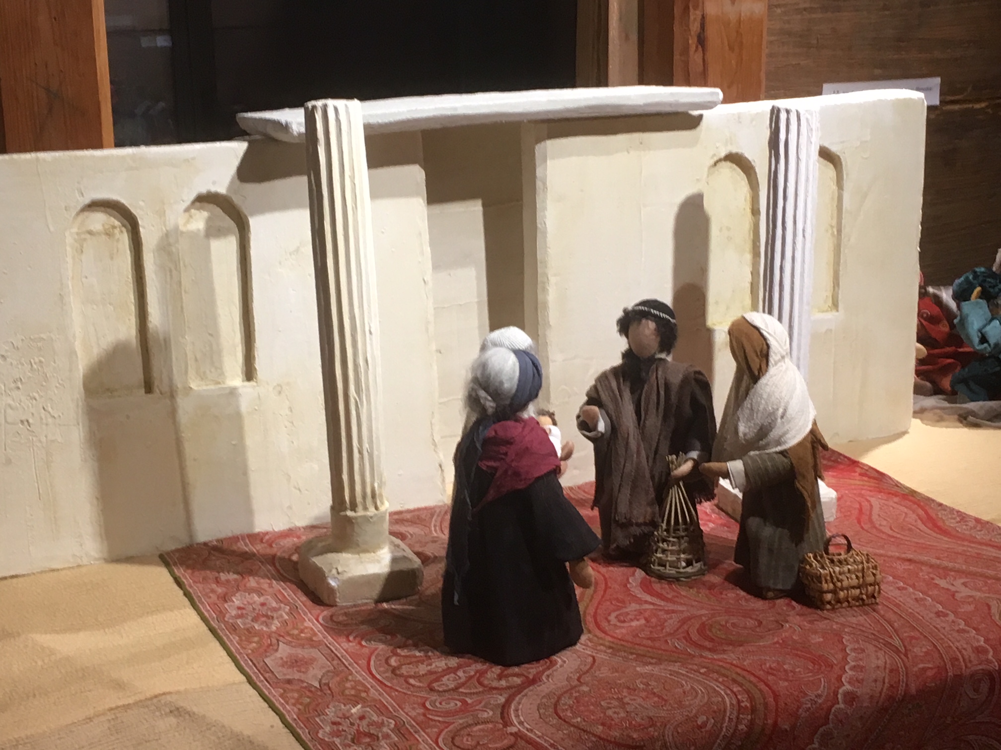 Trotz gestalterischer Schlichtheit hat jede der Bibelfiguren ihre eigene Ausstrahlung. Und durch die Beweglichkeit der Körper (Sisaldraht-Gestell) wirken die Figuren sehr lebendig. Während jahrelanger Kurstätigkeit mit Frauen in verschiedenen Gemeinden entstanden immer wieder neue Bibelfiguren. Auch helle Häuserkulissen und Beduinenzelte wurden nach orientalischen Modellen nachgearbeitet. Zubehör wie Palmen, Wüstenbrunnen, Handmühlen, Tontöpfe und Korbwaren usw. schmücken die Szenen. Natürlich sind für die Kinder die vielen Schafe, Ziegen, Esel und Kamele eine besondere Attraktion. Und die römischen Soldaten mit Speer und Schwert lassen Bubenherzen höherschlagen.