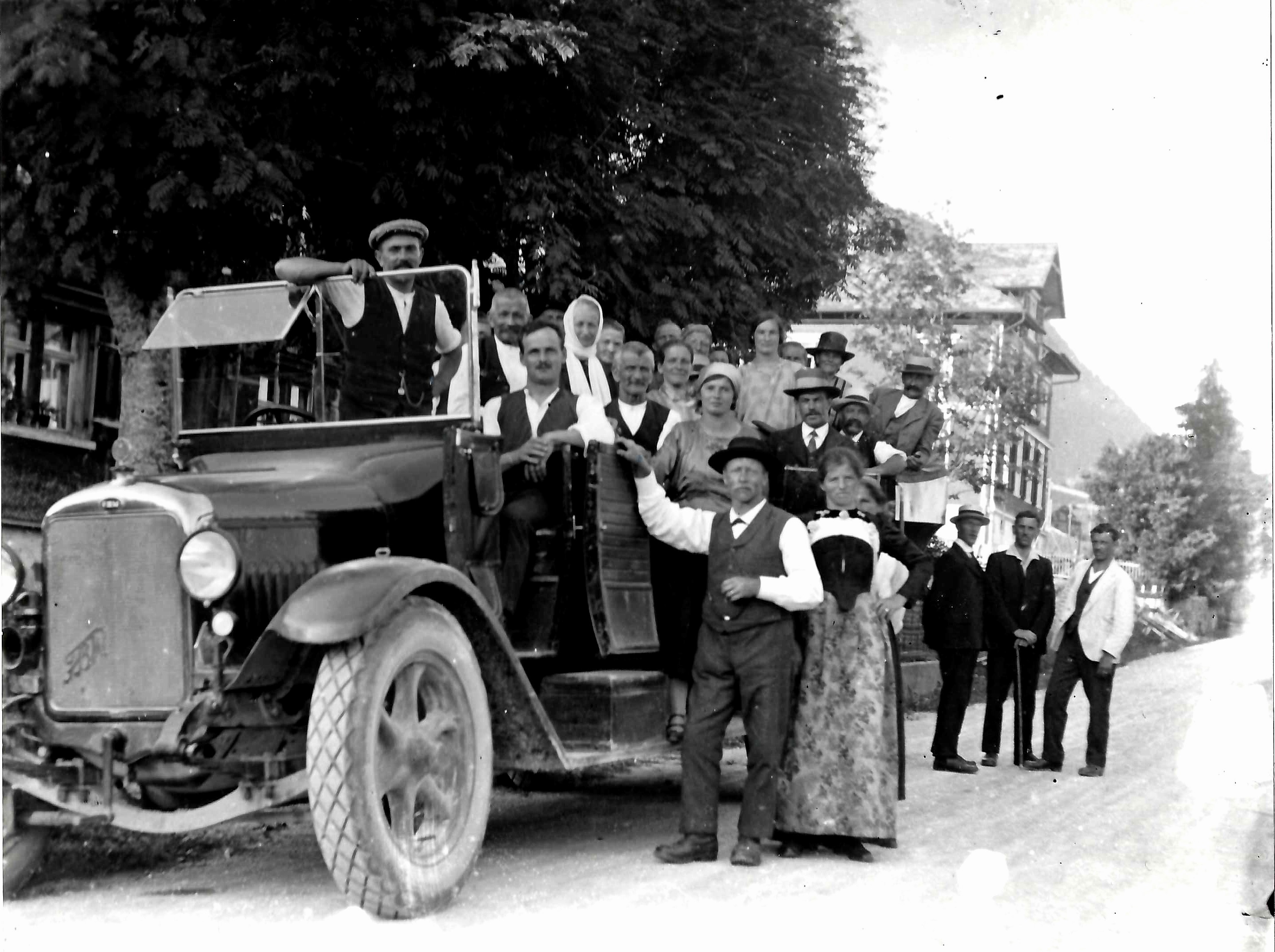 Eindrückliche Bilder von Sängerinnen und Sängern, Musikanten, Schützen, Reitern, Turnern und Frauenvereinen führen uns optisch viele Jahrzehnte ins schwarz-weisse Fotozeitalter zurück. Überaus reich ist die Bilderauswahl zum Beispiel zum Sängerfest von 1937. Einen faszinierenden Schnappschuss hält unser Bild vom Ausflug der ehemaligen Hüttengenossenschaft Fuchsrüti im Sommer 1925 fest. Im offenen FBW-Reisecar gings ins oberste Toggenburg. Die Frauen und Männer präsentieren sich beim Halt auf der Passhöhe in Wildhaus im prächtigsten Sonntagsstaat. Bis in die 1930er-Jahre hatte der kleine Weiler Fuchsrüti tatsächlich eine eigene Käserei beim Wäldchen an der alten Strasse Grüningen-Dürnten-Wald. Erst 1938 fusionierten die Fuchsrütler mit den Herschmettler Bauern. Gemeinsam errichteten sie die heute noch existierende letzte von einst zahlreichen Gossauer Käsereien im Ermisriet.