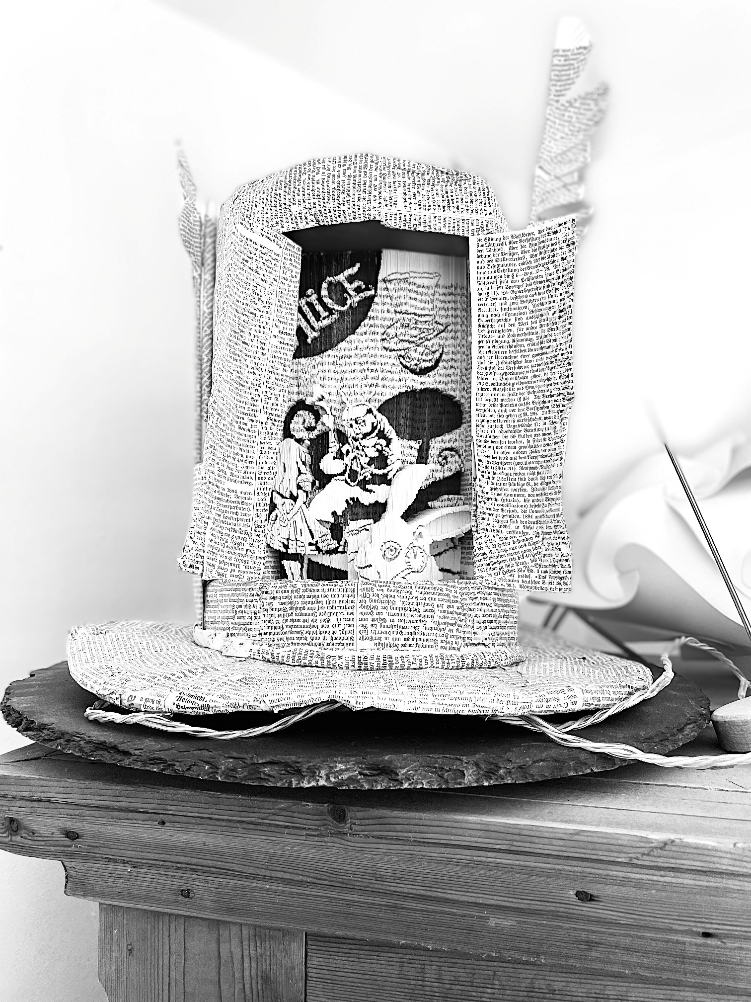 Ans Stecher wandelt Bücher zu Buchskulpturen. Mittels sorgfältiger Faltungen und präzisen Schnitten erschafft er Traumwelten und gibt Worten philosophische Bedeutungen. Seine Buchskulpturen werden auch liebevoll «Eselsohrenkunst» genannt. Mit viel Geduld und einem geeigneten Buch entstehen Kunstobjekte, die uns zum Staunen bringen.