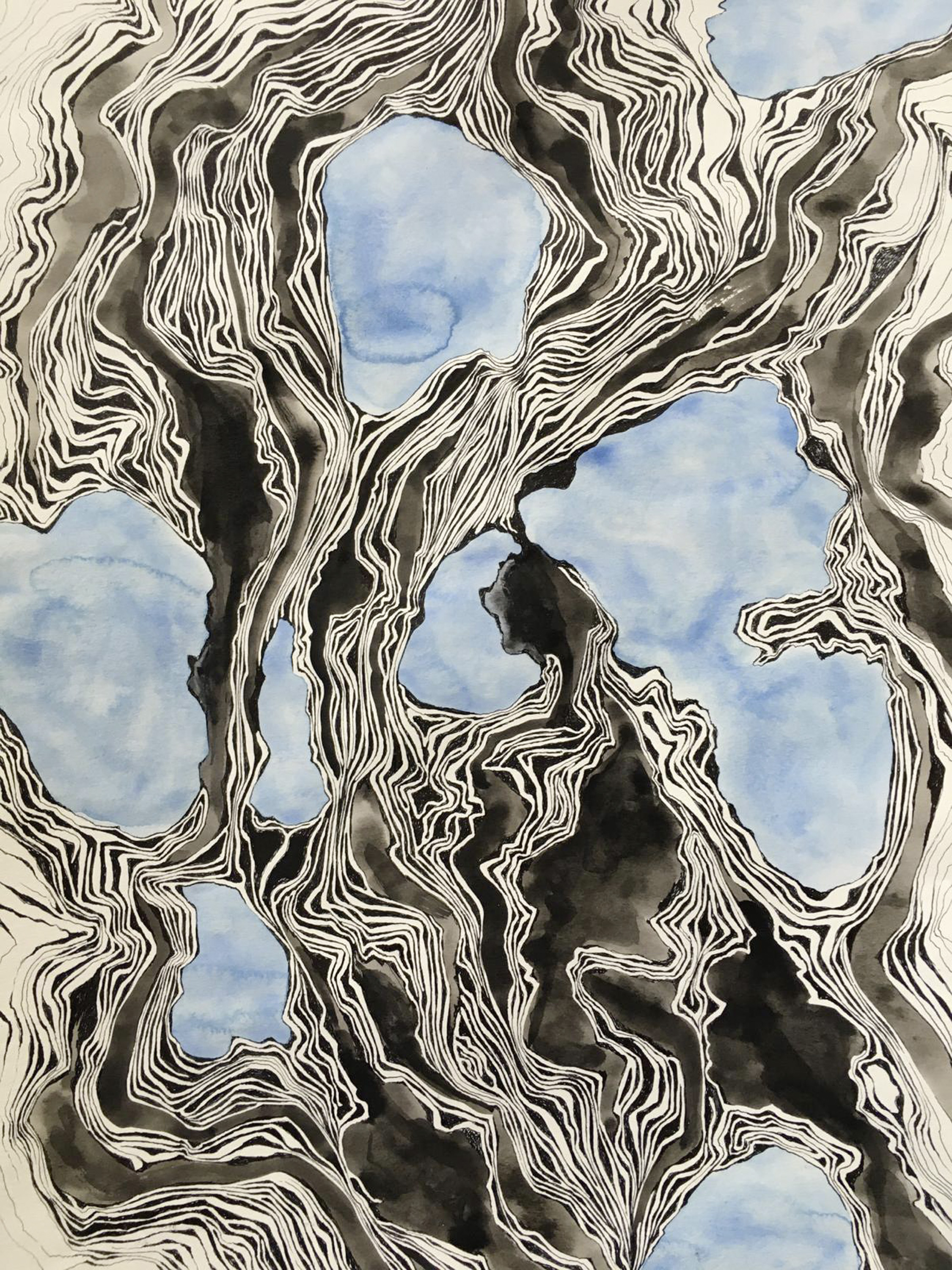 Eva Zollinger zeigt ihre fein gezeichneten Kugelschreiberbilder organischer Formen, welche durch die Natur inspiriert sind und die sie zu neuen Formen weiterentwickelt.